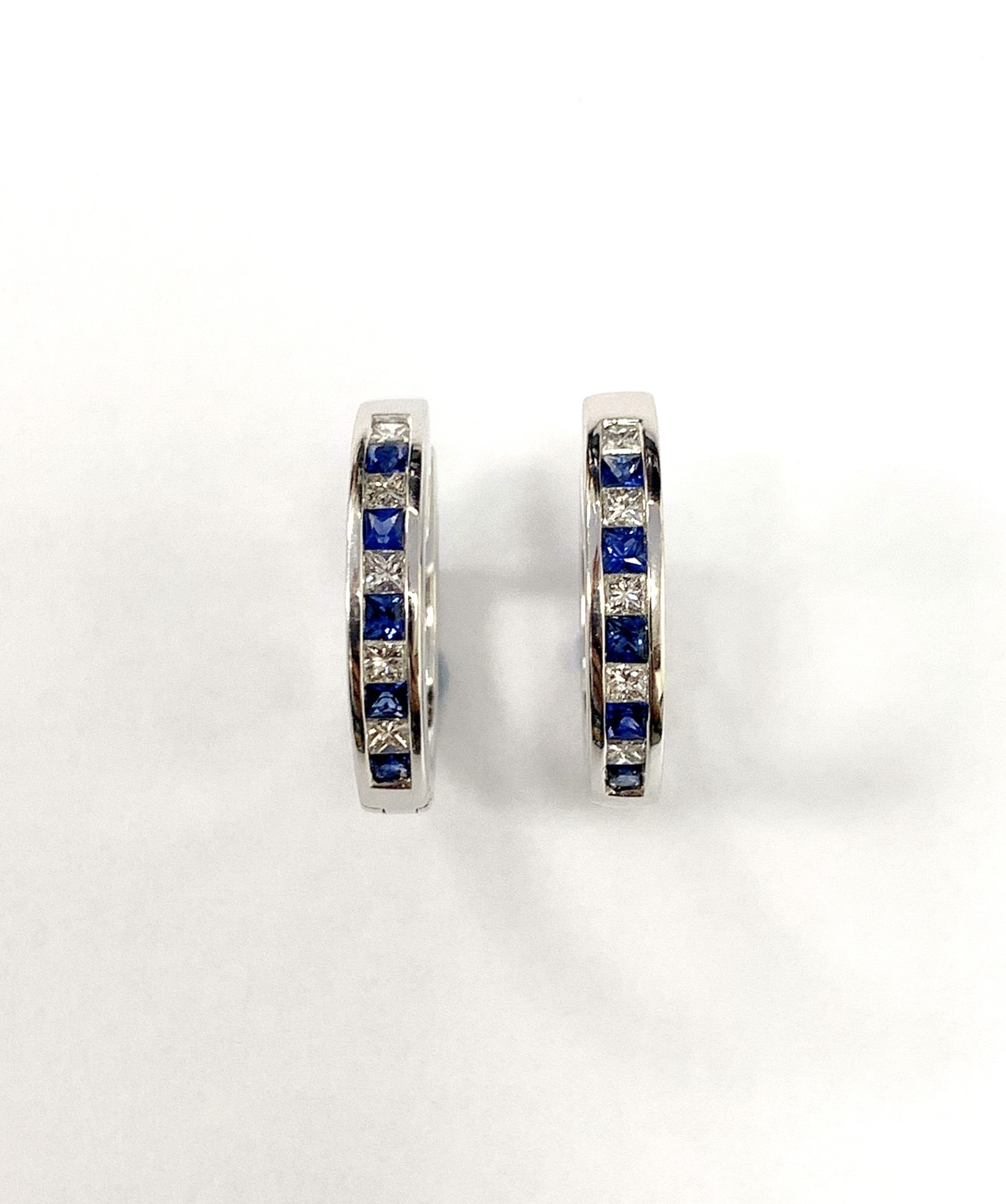 18K WHITE GOLD 0.23 CARAT BRILLIANT ROUND CUT DIAMOND 0.32 CARAT BRILLIANT ROUND CUT SAPPHIRE G/H COLOUR, VS-SI CLARITY