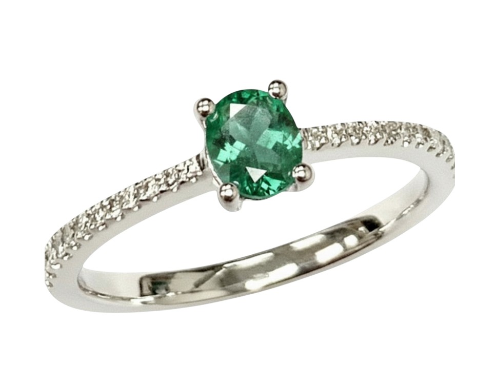 18K WHITE GOLD 0.10 CARAT BRILLIANT CUT DIAMOND 0.31 CARAT OVAL CUT EMERALD G/H COLOUR, VS-SI CLARITY