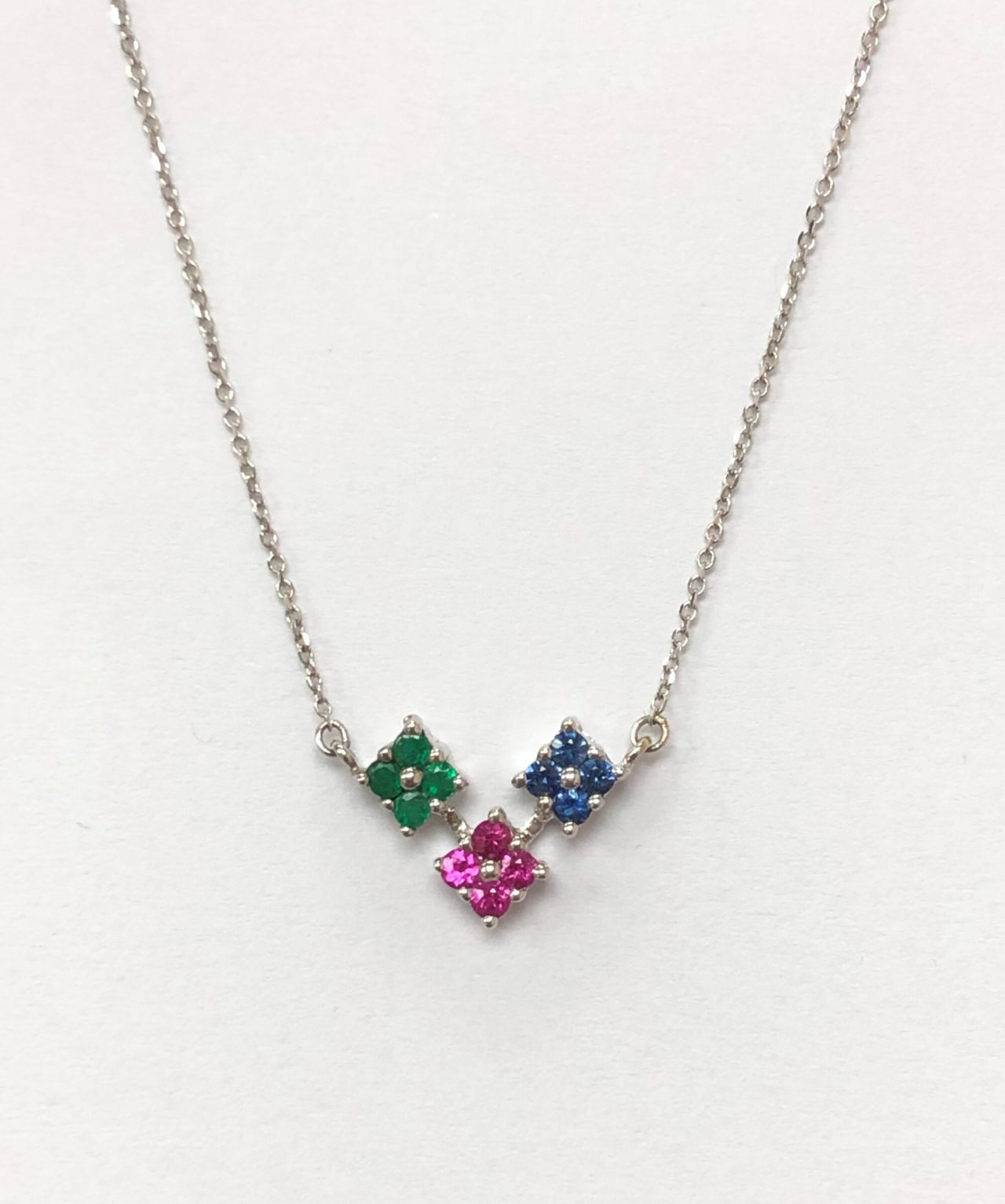 18K白金 0.16卡閃爍紅寶 0.15卡閃爍藍寶 0.08卡閃爍祖母綠